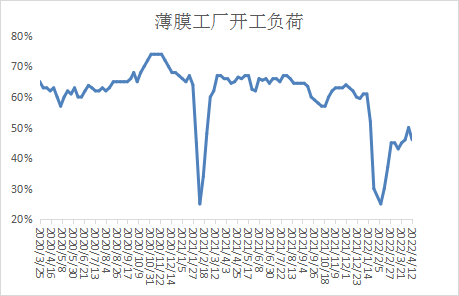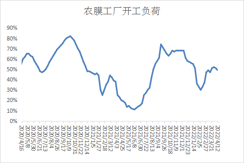 本周农膜开工负荷小幅下降,棚膜处于生产淡季,地膜生产旺季接近尾声,以及部分地区疫情影响物流运输,拖累下游成品库存下降步伐,导致下游开工负荷有所下降。