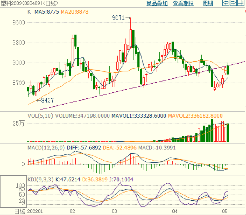 国际油价维持高位,油制PE估值偏低,出厂价仍有调涨预期,部分地区疫情缓解,下游需求有修复预期,国内检修装置开车计划较少,可能刺激塑料期货反弹,提振买家购买积极性,预计下周PE现货市场仍有反弹预期,仅供参考。