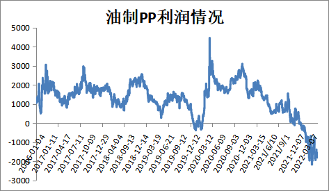 1.PP亏损加剧,尤其是油头制PP亏损明显,超过1000元/吨。