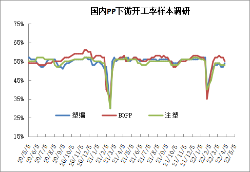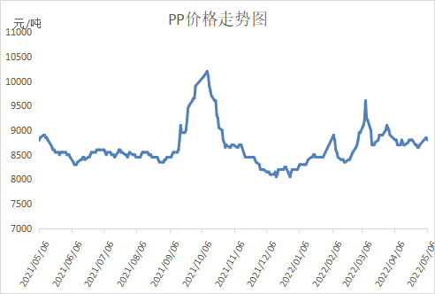 节后PP市场反弹,但是反弹力度有限。五一假期油价一度大涨,节后商品市场高开,期货逼近前高,石化出厂价格上调,带动现货价格整体走高。但是期价在前高附近受阻回落,下游需求依然相对偏弱,市场库存压力较大,阻碍PP反弹,周五拉丝主流价格在8500元/吨附近。