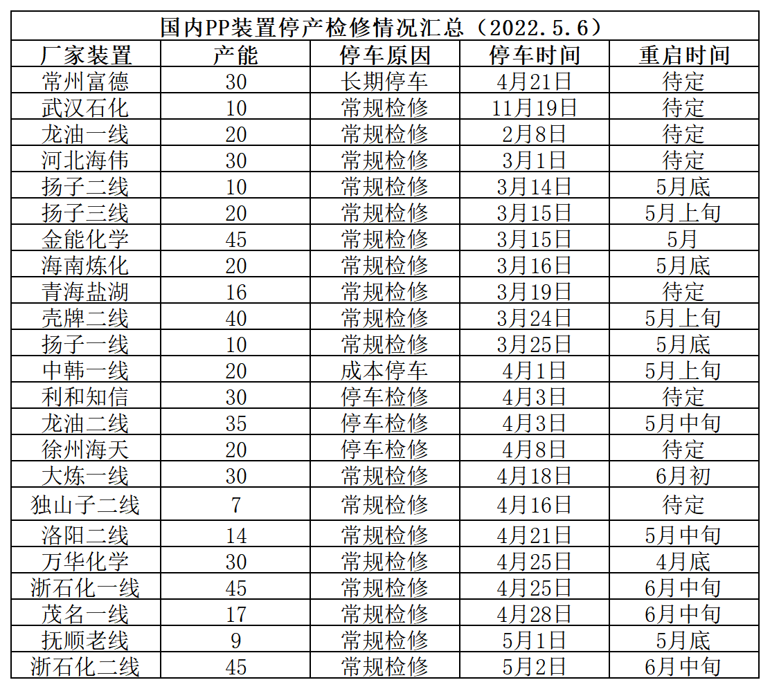 节后需求依然偏弱。虽然上海疫情逐渐控制,但并未完全解除,且浙江等地新增疫情风险,疫情对PP终端需求利空影响仍在。PP本就是需求淡季,疫情减弱PP需求及终端物流运输,导致需求持续偏弱,这也是目前PP反弹最大阻力。