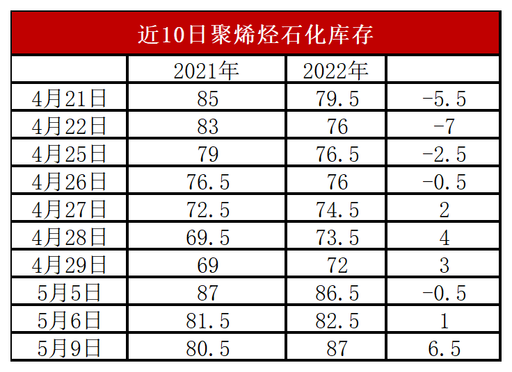 周初石化库存87万吨,较上周五增加4.5万吨,较去年同期高6.5万吨。3月份以来两桶油执行降负保价政策,执行完毕后并未出台最新的降负措施,聚烯烃开工率较前期有所提高,尤其是PE开工率提高明显,供应利好减弱,而需求端依然低迷,且目前社会库存偏高,导致石化去库难度加大。