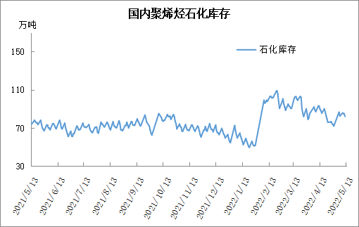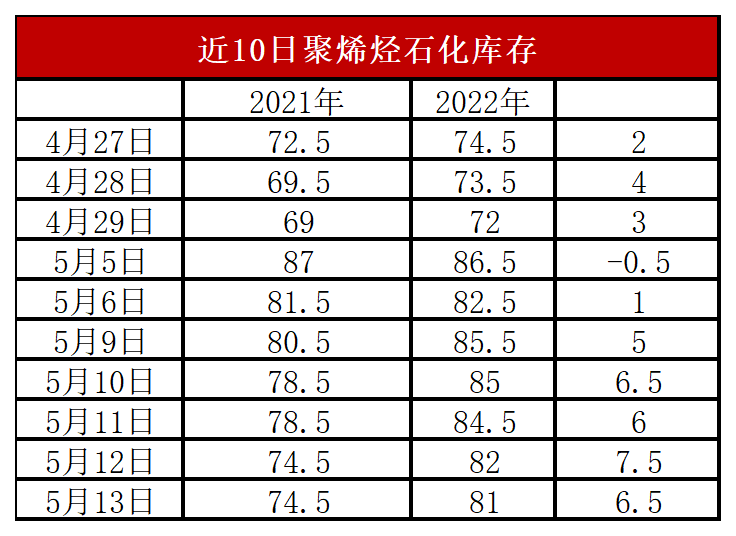 周五石化库存81万吨,较昨天下降1万吨,较去年同期高6.5万吨。近期石化去库速度略有放缓,开始逐渐高于去年同期水平。3月份以来两桶油执行降负保价政策,执行完毕后并未出台最新的降负措施,聚烯烃开工率较前期有所提高,尤其是PE开工率提高明显,供应利好减弱,而需求端依然低迷,且目前社会库存偏高,导致石化去库难度加大。