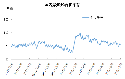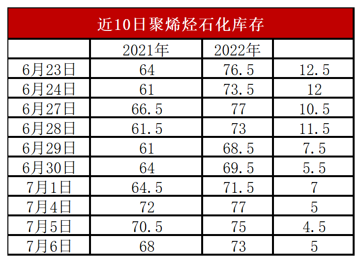 周三石化库存73万吨,较昨天下降2万吨,较去年同期高5万吨左右。经历了月底及月初短暂垒库之后,石化去库重回正轨。目前聚烯烃计划内检修装置较多,加之前期意外停车的上海石化、茂名石化并未重启,PP开工率继续维持85%以下的低位水平。供应压力不大,需求端低价成交好转,近期石化正常去库,暂无库存压力。