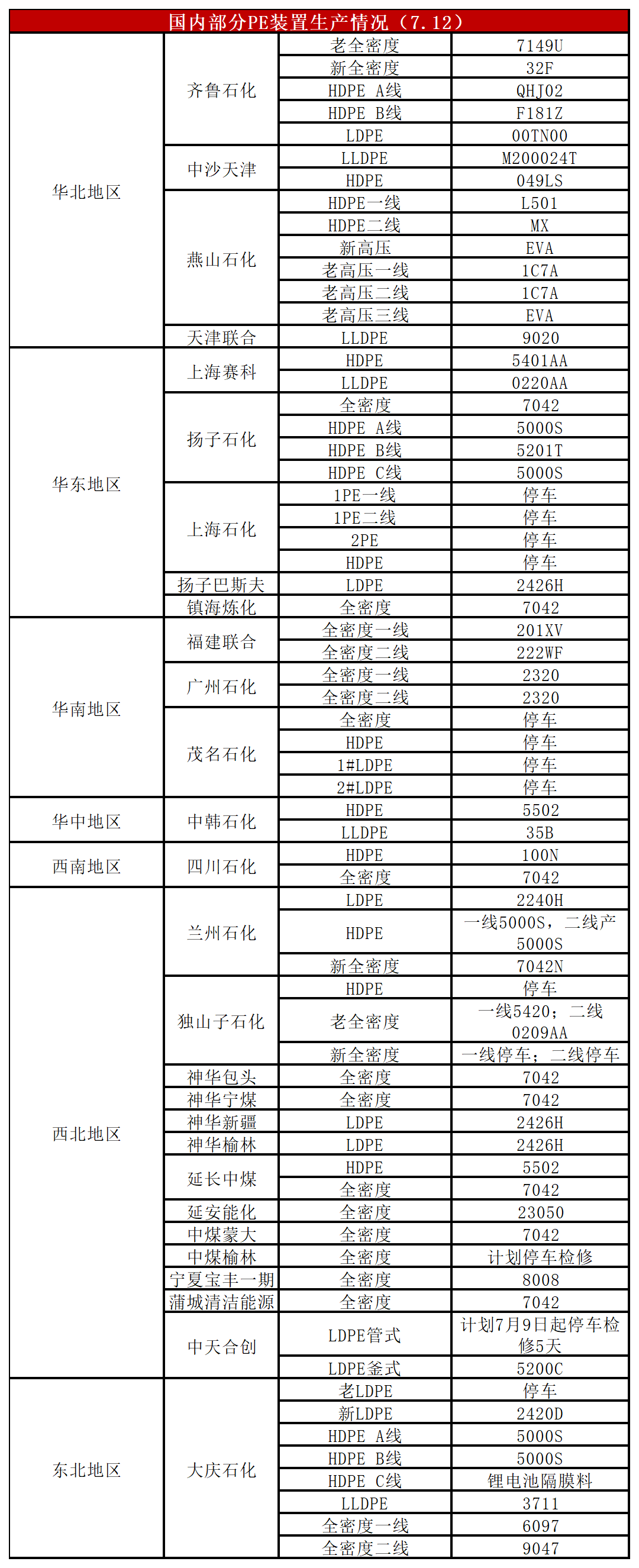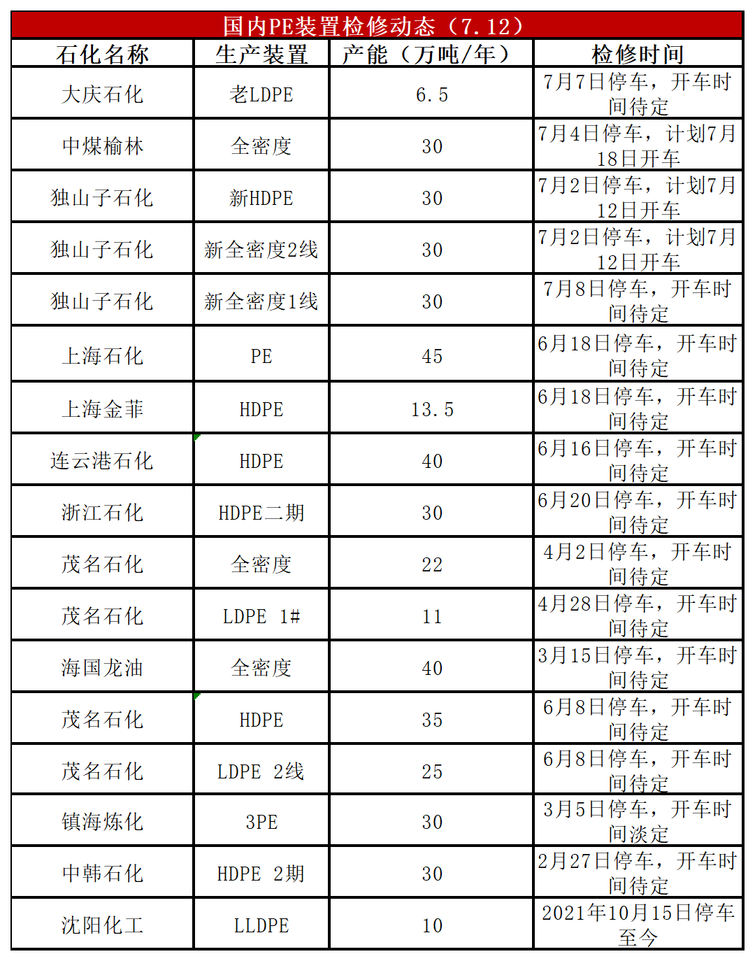 本周新增检修装置偏少,独山子石化部分检修装置计划开车,预计 PE开工负荷上升。