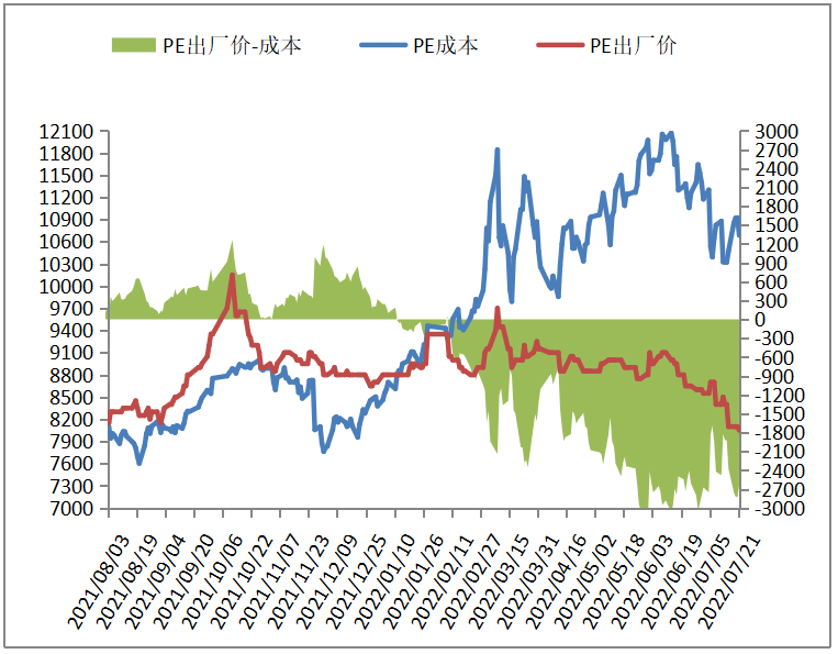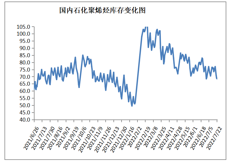 截至7月22日生产企业聚烯烃库存在68.5万吨,较上周同期下降5万吨,国内PE装置负荷小幅下降,下游农膜及包装膜开工负荷小幅上升,套保商降价出货,支撑库存下降,下周PE装置负荷降幅有限,关注下游需求变化。