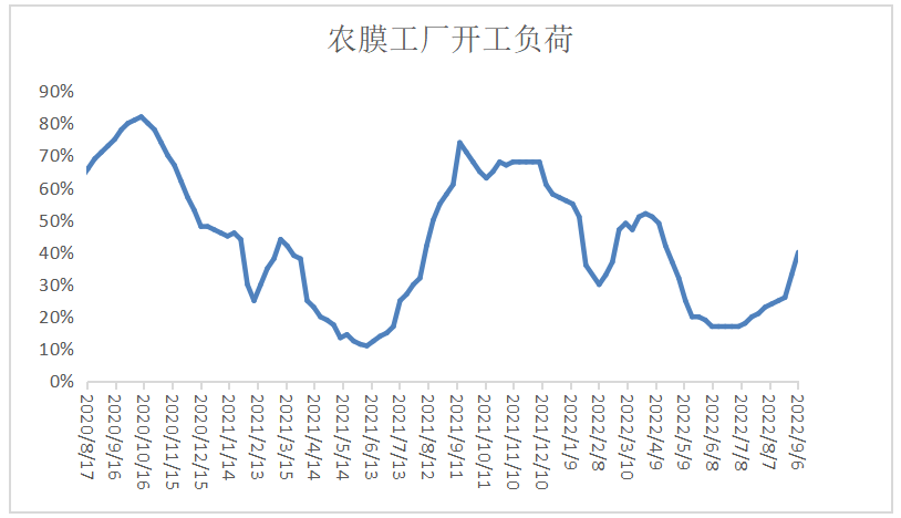本周农膜开工负荷继续上升7%,棚膜开工负荷增长开始加快,部分订单跟进,节前备货,原料库存增加,大蒜地膜需求少量跟进,部分高端膜订单跟进尚可,其他功能膜订单增长一般。农膜开工继续提升,叠加备货需求,带动市场价格上涨。棚膜生产旺季逐渐临近,预计下游开工负荷震荡上升。