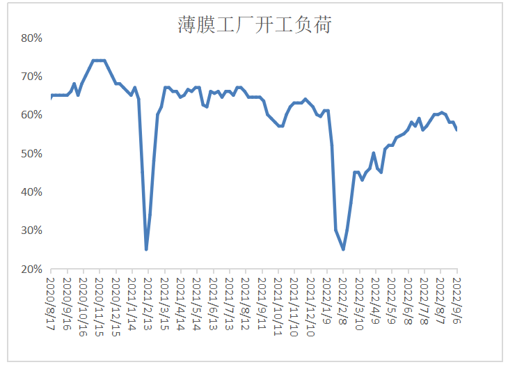 本周PE包装膜开工率较上周小幅下降2%左右。包装膜食品类订单热收缩膜开工较好,带动包装膜需求,但是热收缩膜旺季生产基本接近尾声,整体开工小幅下降,下游刚需采购为主。下周进入“金九银十”,缠绕膜将进入生产旺季,需求有好转预期。