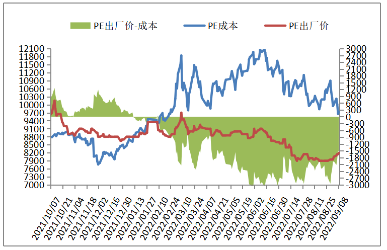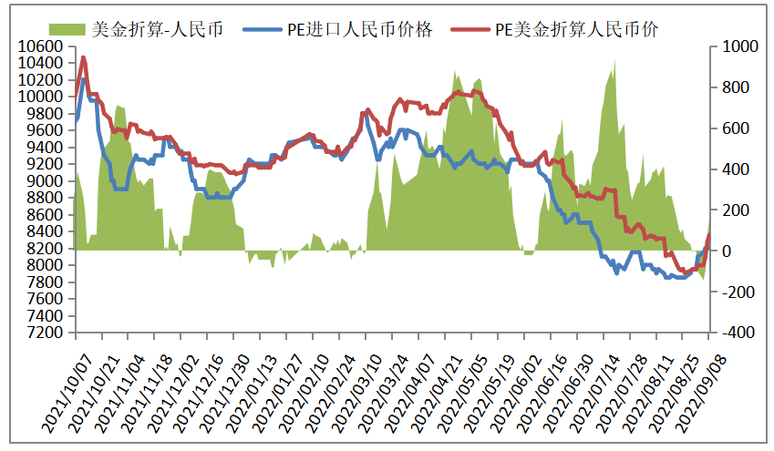 本周PE进口线性美金价格小幅上涨,主流报价970-980,折算人民币成本在8250-8350,市场主流8150-8200,高国产线性100-150左右。
