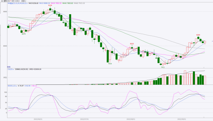 本周塑料期货走势下跌为主,5日均线横盘整理, MACD指标红柱逐渐缩短, KDJ指标继续向下发散,持仓量和成交量都变化不大,盘面阶段性止涨,但是下方空间较大,宏观消息面影响加大,后市信心不足,预计塑料主力弱势整理,仅供参考。