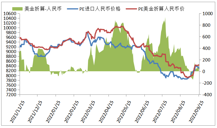 本周PE进口线性美金价格变化不大,主流报价970-980,折算人民币成本在8250-8450,市场主流8150-8250,高国产线性100-200左右。