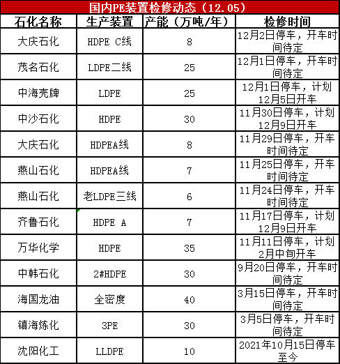 PE装置大庆石化HDPE停车,开工负荷维持92%左右,比上周下降1%,较去年同期上涨5%。中海壳牌LDPE有开车计划,浙石化HDPE和上海石化LDPE有停车计划,预计PE开工负荷小幅下跌。