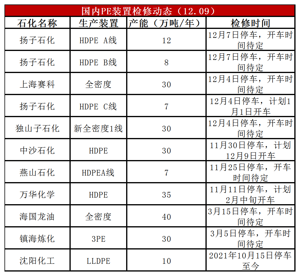 PE装置齐鲁石化低压开车,扬子石化低压停车,开工负荷维持91%左右,比上周下降1%,较去年同期上涨3%。中沙石化HDPE、上海赛科有开车计划,预计PE开工负荷小幅上涨。