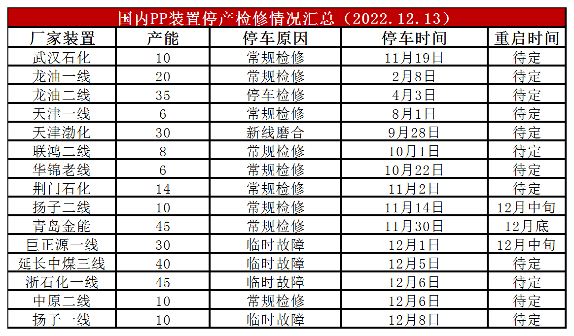 本周福建联合、东莞巨正源等前期检修装置陆续重启,PP开工率明显反弹,目前反弹至89%附近。较上周末增加2%,较上月同期下降1%,较去年同期低1%,虽然开工率依然处于90%以下低位水平,但是检修利好明显减弱。