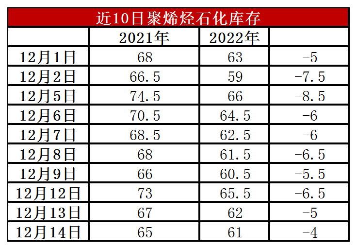 周三石化库存61万吨,较昨天下降1万吨,较去年同期低4万吨。本周石化去库提速,且目前库存水平仍明显低于去年同期,库存压力不大。目前上游开工率依然整体偏低,近期市场反弹情绪好转,尤其是口罩等需求有望爆发,库存得到消化,去库提速,短期库存有望继续维持低位水平。