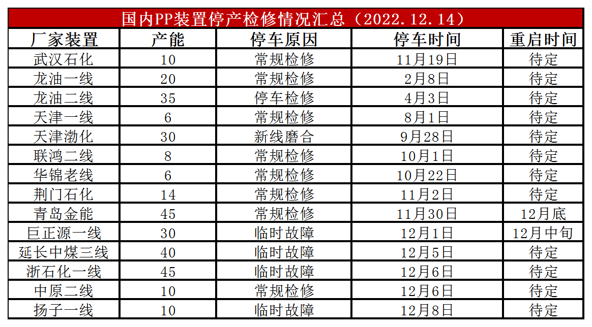 本周福建联合、东莞巨正源等前期检修装置陆续重启,PP开工率明显反弹,目前反弹至89%附近。较上周末增加2%,较上月同期下降1%,较去年同期低1%,虽然开工率依然处于90%以下低位水平,但是检修利好明显减弱。