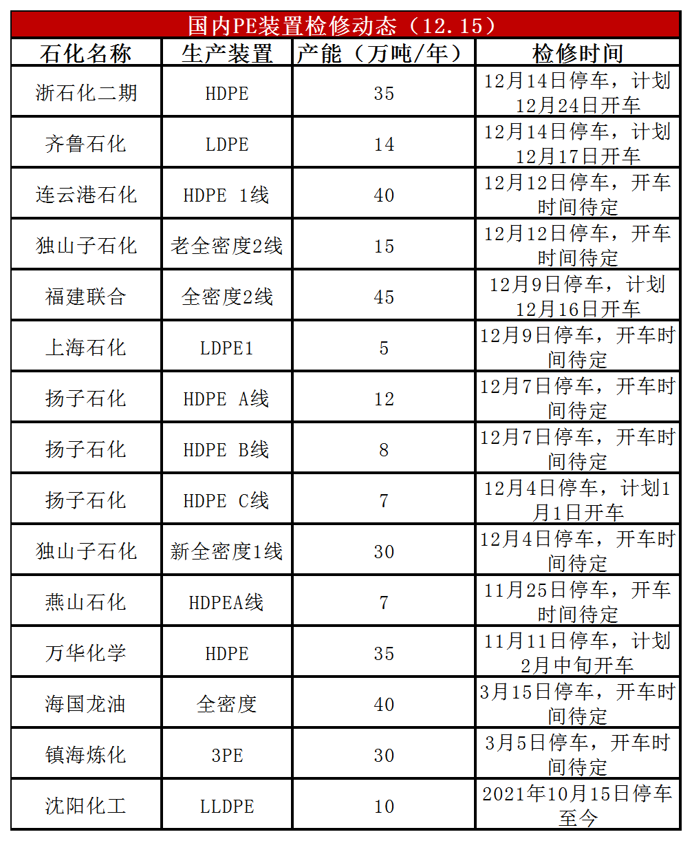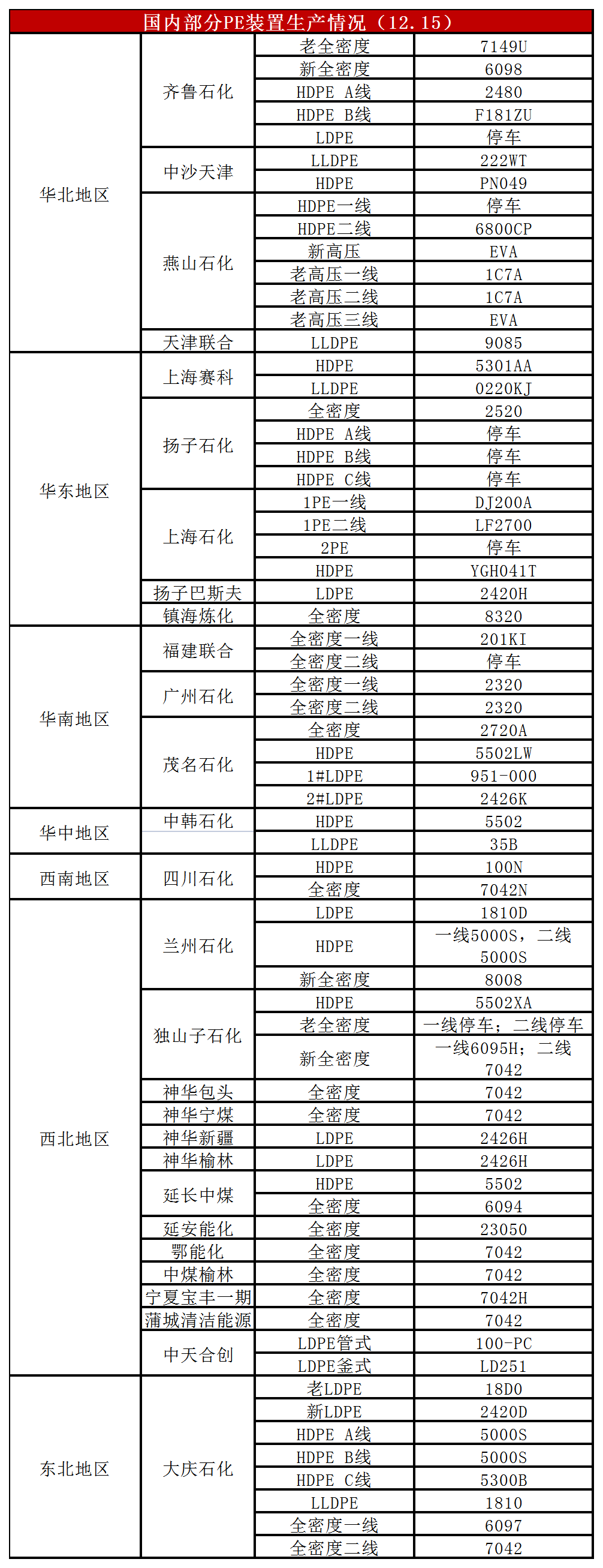 PE装置浙石化HDPE停车,齐鲁石化LDPE停车,开工负荷下降至89%左右,比上周下降3%,较去年同期下降1%。福建联合全密度、齐鲁石化LDPE有开车计划,预计PE开工负荷小幅上涨。