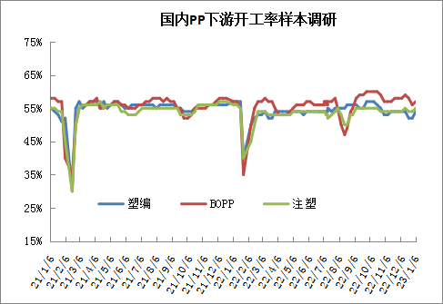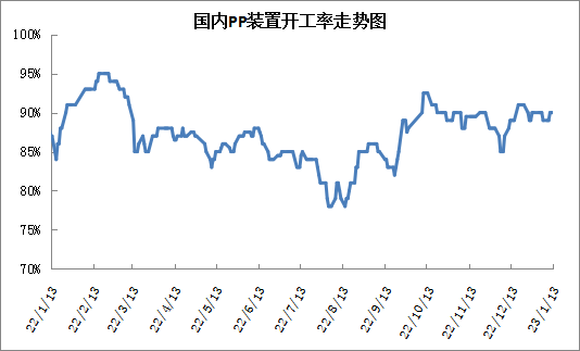 本周PP装置变化不大,仅有个别装置停车以及重启,二者抵消后PP开工率变化不大,继续维持在90%附近。新装置方面,华南地区广石化(揭阳)以及海南炼化等试车,但是尚未正式投产,供应端压力暂时不大。不过春节及节后上游正常开工,新装置陆续投产,预计届时供应压力逐渐增加。