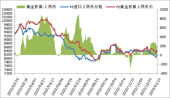 本周PE进口线性美金主流报价小幅上涨,周末在1000-1010,折算人民币成本在8350-8450,市场主流8200-8250,高国产线性150左右。