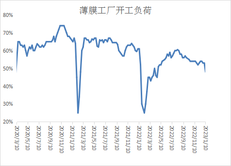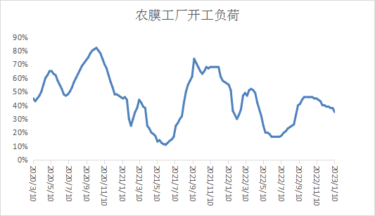本周农膜开工负荷下降3%左右,需求进一步放缓,地膜启动缓慢,预计延后。临近春节假期,农膜工厂开始陆续停工,订单继续下滑,原料库存小幅减少。下周春节,备货预计结束,农膜工厂预计多放假停工,预计农膜开工负荷下降明显。