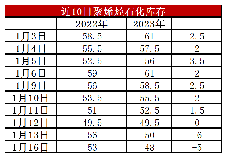 周二石化库存48万吨,较昨天下降2万吨(昨天修正为50万吨),较去年同期低5万吨。年底石化快速去库,最低再次跌破50万吨大关。周末石化垒库远低于预期,仅增加0.5万吨,主要因为年底下游集中备货,尤其是近期止跌反弹刺激下游拿货积极性提高。不过本周即将春节放假,下游备货基本结束,石化继续去库难度加大,且节后面临较大垒库压力。