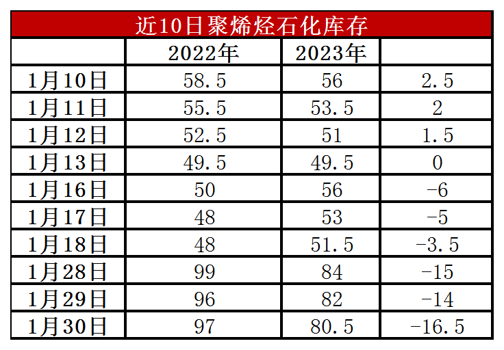 周一石化库存80.5万吨,较昨天下降1.5万吨,较去年同期低16.5万吨。春节期间虽然下游多数放假,但是节前备货充分,有效消化上游库存,加之石化开工率低于往年同期水平,节后库存压力不大。不过节后下游需求尚未完全恢复,且社会库存偏高,节后消化节前备货需要时间,月底考核任务下库存有望维持低位,但是下月初面临较大去库压力。