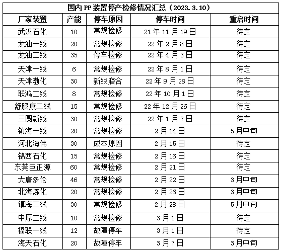 本周大港石化、海天石化、神华宁煤等前期检修装置陆续重启,PP开工率反弹至89%附近,为阶段性高点,检修利好减弱。后期PP将同时面临集中检修以及新装置扩能的影响。