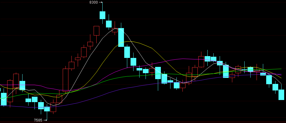 本周PP期货主力05合约连续下跌,最低逼近7700,跌破前期低点支撑。本周商品情绪继续偏悲观,PP依然成为绝对空配品种,PP价格连续下跌。目前PP均线发散向下,暂时有破位风险,短期不排除继续下探可能。