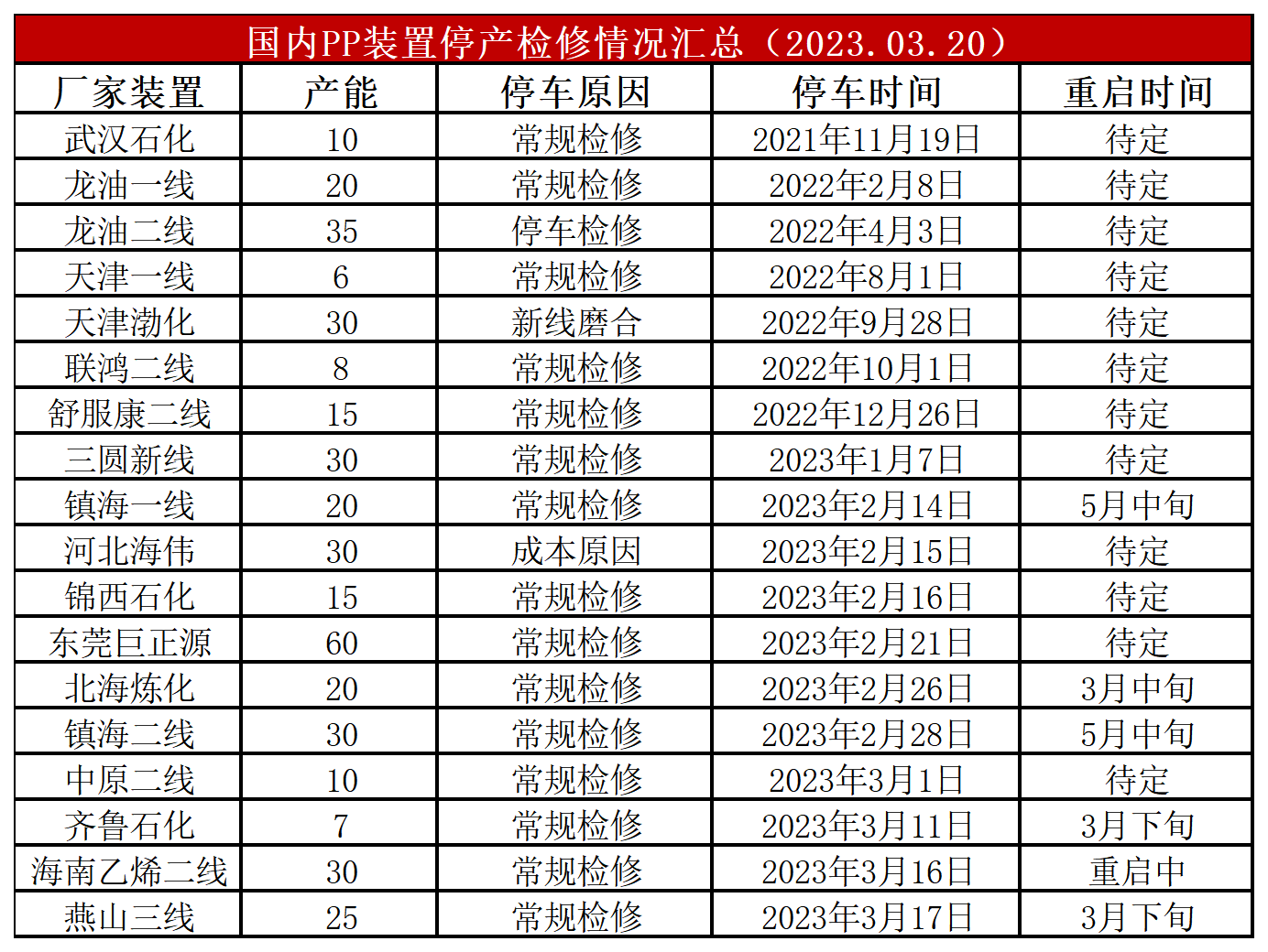 周初PP开工率在90%附近,较上周初提高1%,较上月同期高5%,与去年同期高3%。后期PP进入集中检修期,不过新装置也陆续投产,二者抵消后供应端或相对稳定。