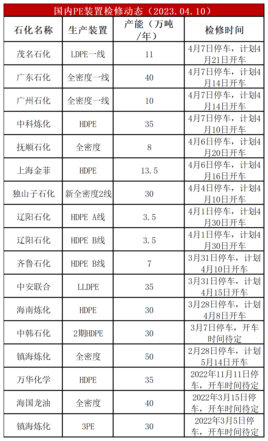 PE茂名石化LDPE、广东石化全密度、广州石化全密度、中科炼化HDPE停车,开工负荷下降至86%左右,比上周-3%,较去年同期+11%。PE装置海南炼化HDPE、独山子全密度、广东石化、广州石化、中科炼化计划开车,吉林石化HDPE计划停车,预计PE开工负荷小幅上涨。