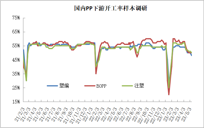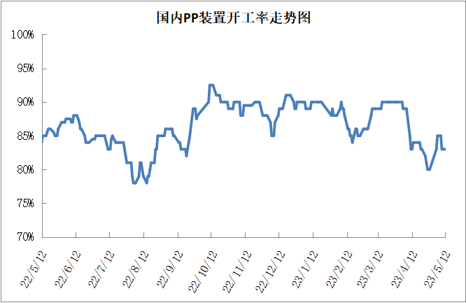 PP需求端依然难有实质性改善,反而更加恶化。五一之后,部分下游需求传统小旺季也并未启动,节后下游订单缺乏,开工率下降明显,并且因为缺乏订单而导致的停工放假企业有所增加。5-6月份仍是PP下游需求传统淡季,目前宏观背景下暂时看不到明显改善迹象。