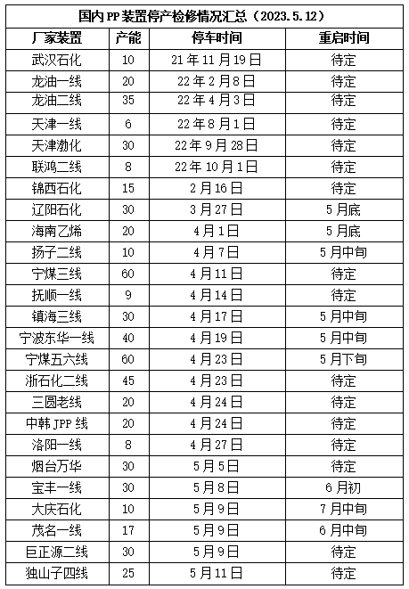 1.PP检修季,检修装置较多。