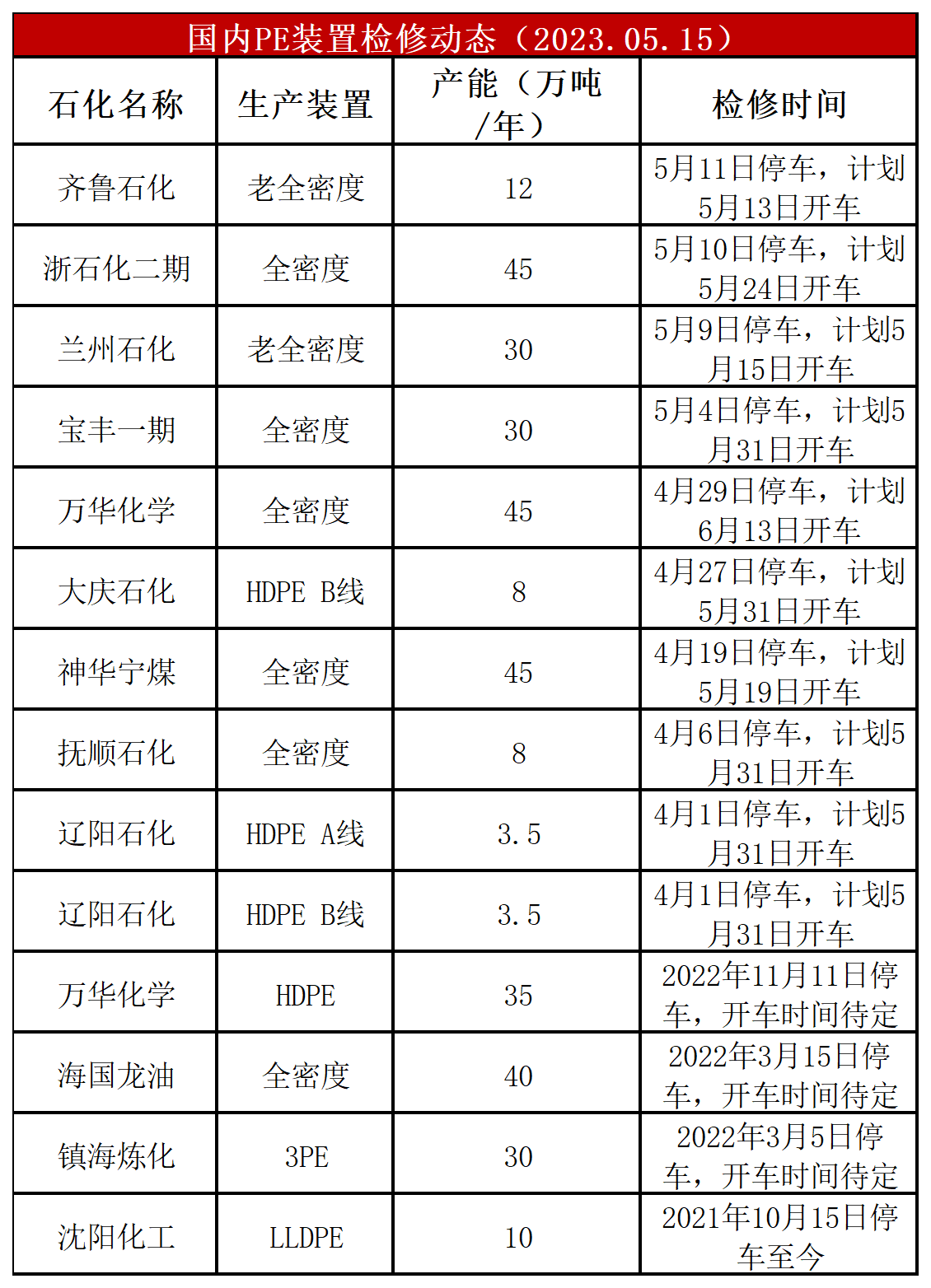 PE装置中海壳牌HDPE停车,燕山LDPE、上海石化LDPE、广州石化全密度开车,开工荷下降至87%左右,比上周-4%,较去年同期+5%。PE装置齐鲁石化全密度计划开车,浙石化HDPE计划停车,预计PE开工负荷小幅调整。