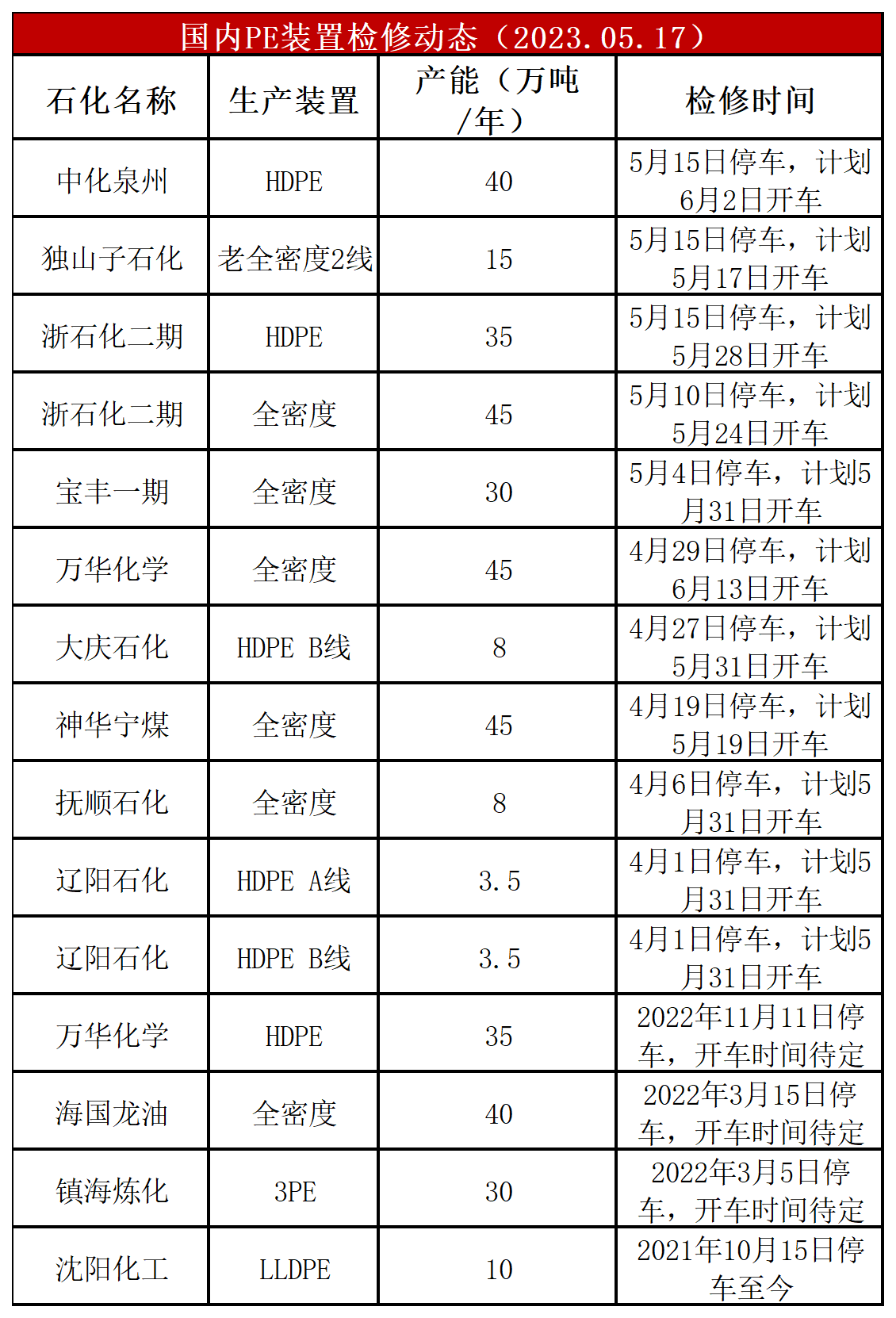 PE装置茂名石化LDPE开车,开工荷维持86%左右,比上周-4%,较去年同期+2%。PE装置独山子石化全密度计划开车,中韩石化LLDPE、天津石化LLDPE、齐鲁石化HDPE计划停车,预计PE开工负荷震荡走低。