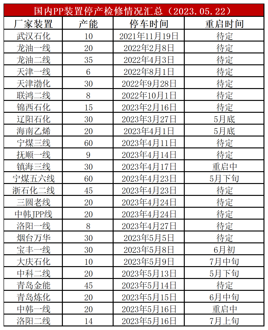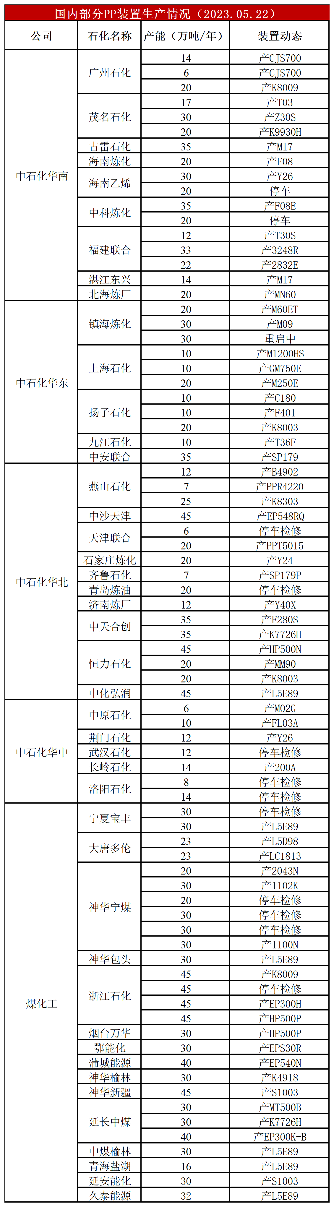 镇海炼化、中韩石化等装置陆续重启,PP开工率反弹至85%附近,较上周增加1%,较上月同期高2%,较去年同期低1%。后期检修计划逐渐减少,且新装置面临投产,供应压力逐渐增大。