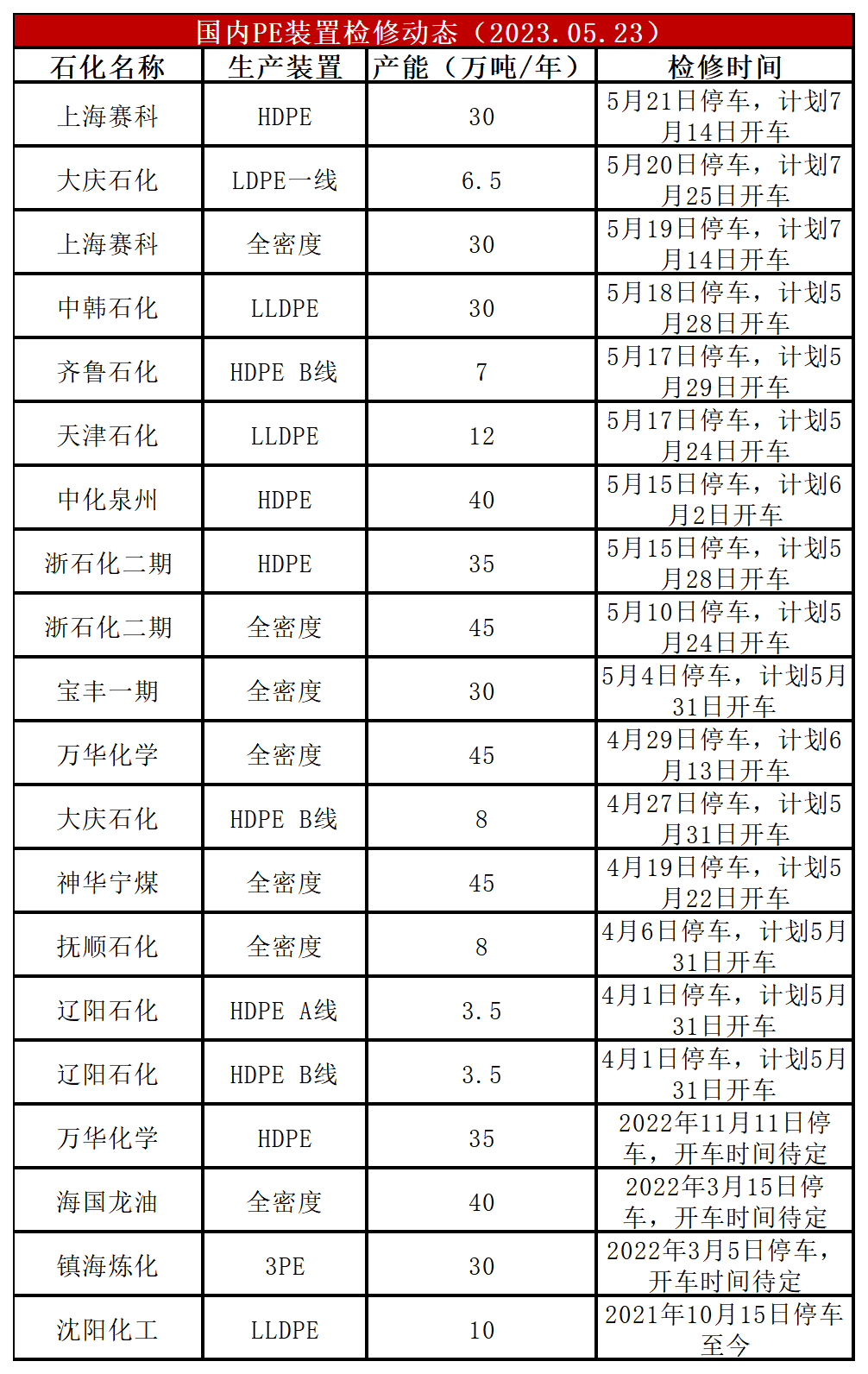 PE装置大庆石化LDPE、上海赛科HDPE停车,开工荷下降至83%左右,比上周-2%,较去年同期+3%。PE装置神华宁煤全密度、浙石化二期、天津石化LLDPE计划开车,预计PE开工负荷走势偏强。