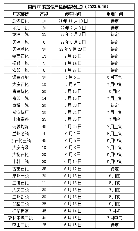 PP供应分析——检修汇总