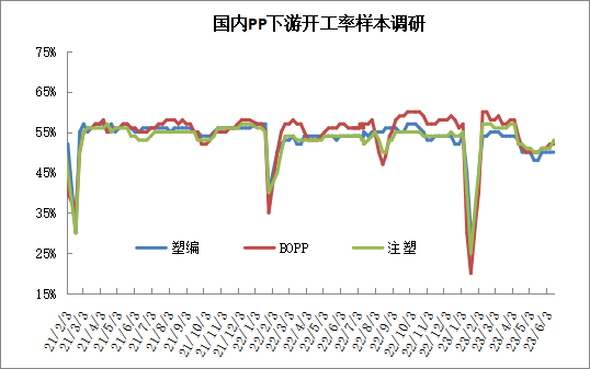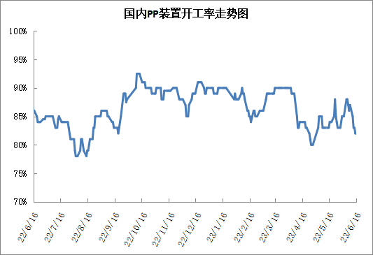 PP开工率降至85%以下。
