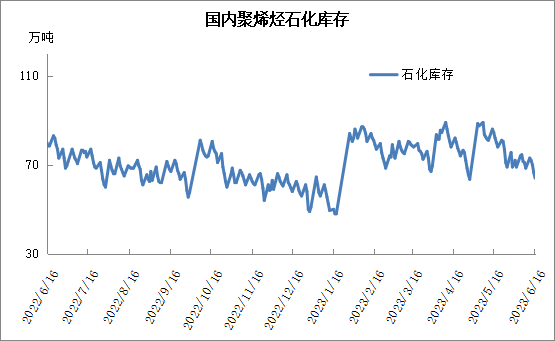 本周石化去库提速恢复正常,周内去库近10万吨。近期石化检修装置再次增多,尤其是部分计划外装置检修,使得聚烯烃开工率明显下降,供应压力再次缓解。此外近期价格下跌后有反弹迹象,市场拿货意向有所增强,成交改善,石化维持正常去库状态,短期内暂无库存压力。