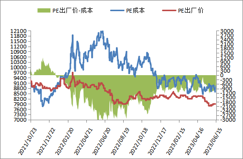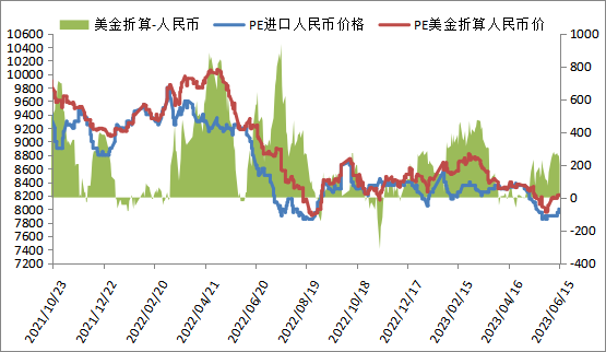 本周PE进口线性美金主流价格大稳小动,周末在930-950,折算人民币成本在8200-8350,市场主流7800-7900,高国产线性400-450左右,价差维持