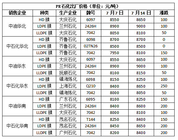 PE出厂价统计