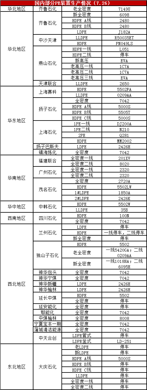简评:PE装置大稳小动,开工负荷维持82%左右,比上周-2%,较去年同期+1%。PE装置大庆石化全厂、中科炼化HDPE、中天合创LDPE、延长中煤全密度、燕山石化HDPE、广东石化HDPE计划开车,中煤榆林全密度计划停车,预计PE开工负荷小幅上涨。