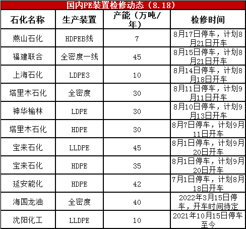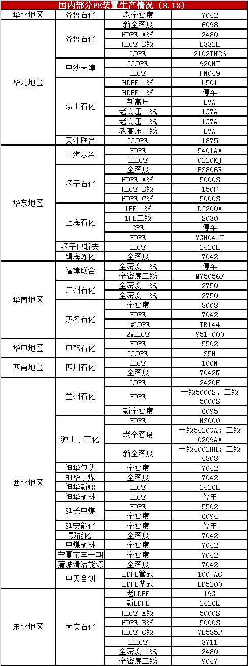 简评:PE装置燕山石化HDPE停车,独山子石化HDPE开车,开工负荷上涨至89%左右,比上周+1%,较去年同期+9%。PE装置延安能化HDPE、上海石化LDPE计划开车,燕山石化HDPE、广东石化全密度计划停车,预计PE开工负荷小幅调整。