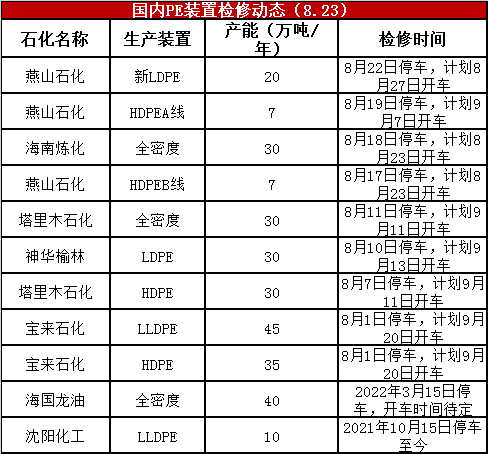 简评:PE装置独山子全密度、延安能化HDPE、上海石化LDPE、连云港石化HDPE、福建联合全密度开车,燕山石化LDPE停车,开工负荷上涨至91%左右,比上周+4%,较去年同期+3%。PE装置燕山石化HDPE和LDPE、海南炼化全密度计划开车,预计PE开工负荷偏强调整。