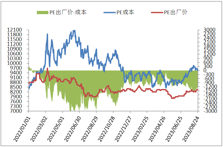 石化成本及利润国际油价期货走势偏弱,周末按按布伦83.36,对标LL成本在9562左右,高LL出厂价1212左右,成本支撑略减弱。