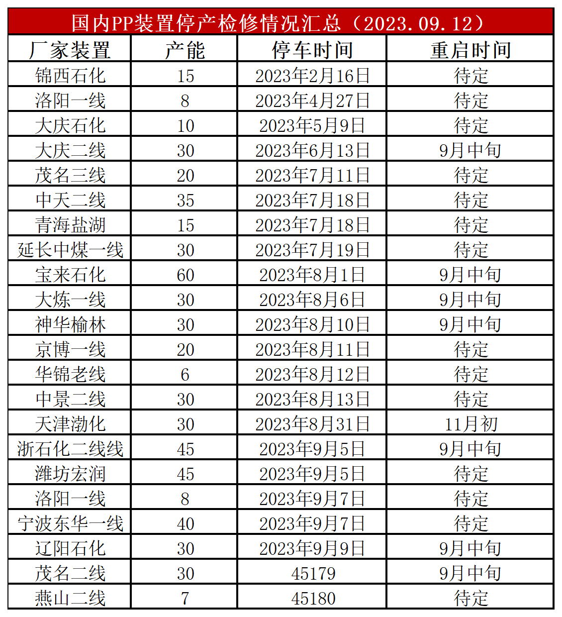 简评:周初虽然广州石化一线重启,但是燕山二线、茂名二线等装置停车检修,PP开工率继续缓慢下降,目前在84%附近,较上周下降1%。虽然PP检修计划较少,但是近期计划外检修明显增多,开工率有所下降,一定程度缓解供应压力。