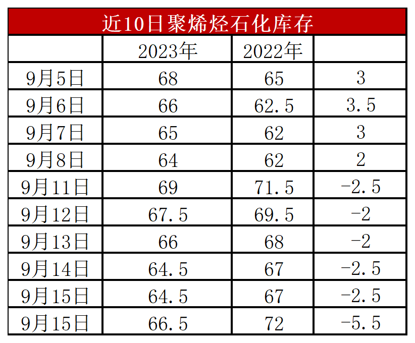 分析:周一石化库存66.5万吨,较上周末增加2万吨,较去年同期低5.5万吨。近期石化去库受阻,上周去库不足5万吨。需求端逐渐改善,下游拿货积极性提高;供应端虽然新装置面临投产,但是石化企业开工率不高,加之石化库存转化为社会库存明显,石化库存压力暂时不大。