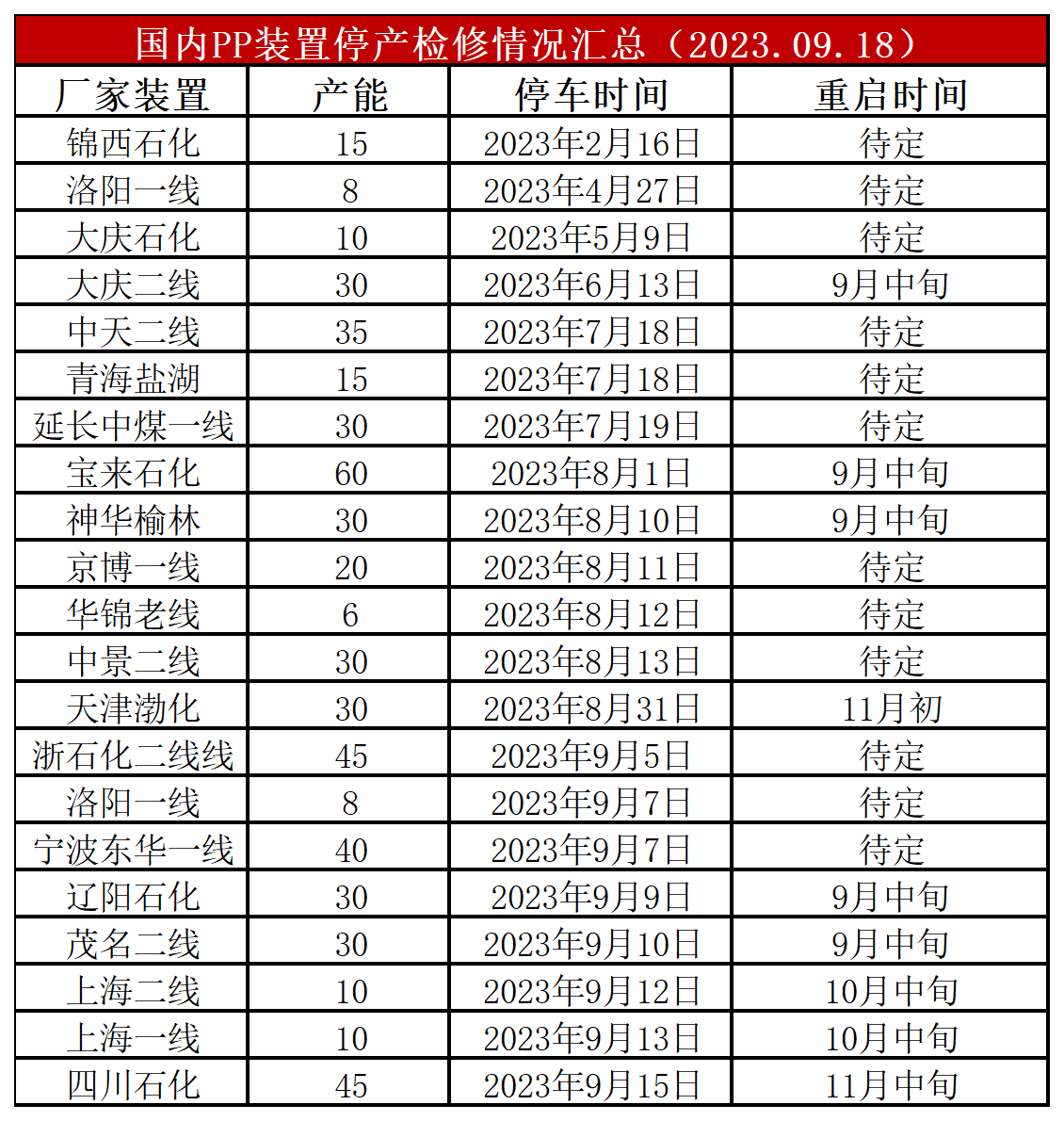 简评:周初PP开工率在87%附近。PP开工率阶段性下调之后,近期有所反弹,后期检修装置及重启装置相当,预计开工率继续维持85%偏高水平,但是宝丰、东华等新装置再次面临投产,届时供应压力较大。