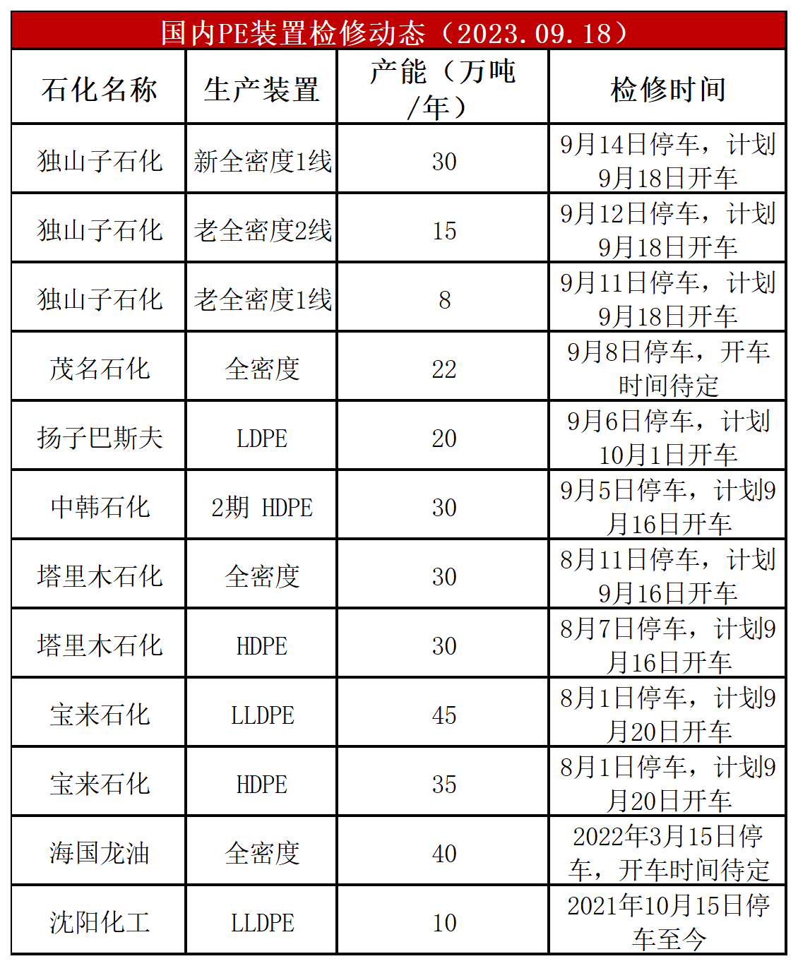 简评:PE装置大庆石化全密度、燕山石化HDPE开车,开工负荷上涨至89%左右,比上周+2%,较去年同期+1%。PE独山子石化全密度、塔里木石化HDPE和全密度、中韩石化HDPE计划开车,四川石化计划停车大修,榆林化工HDPE计划停车,预计PE开工负荷小幅上涨。