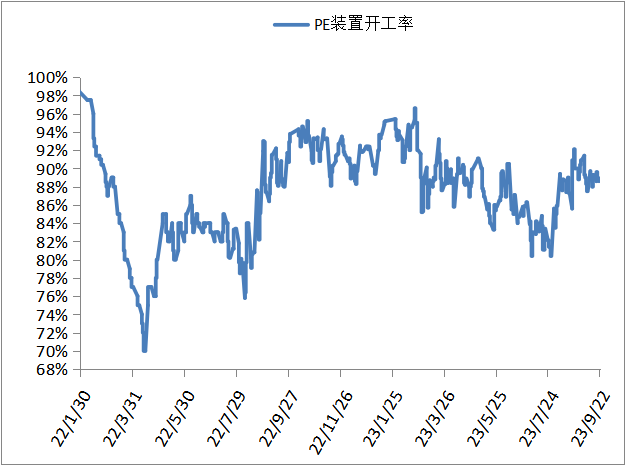 本周PE装置变化不大,开工负荷周末维持89%左右,比上周-1%,较去年同期+1%。PE宝来全厂大修即将结束,独山子石化全密度、兰州石化全密度榆林化工HDPE、广东石化全密度计划开车,齐鲁石化HDPE计划停车,预计PE开工负荷小幅上涨。
